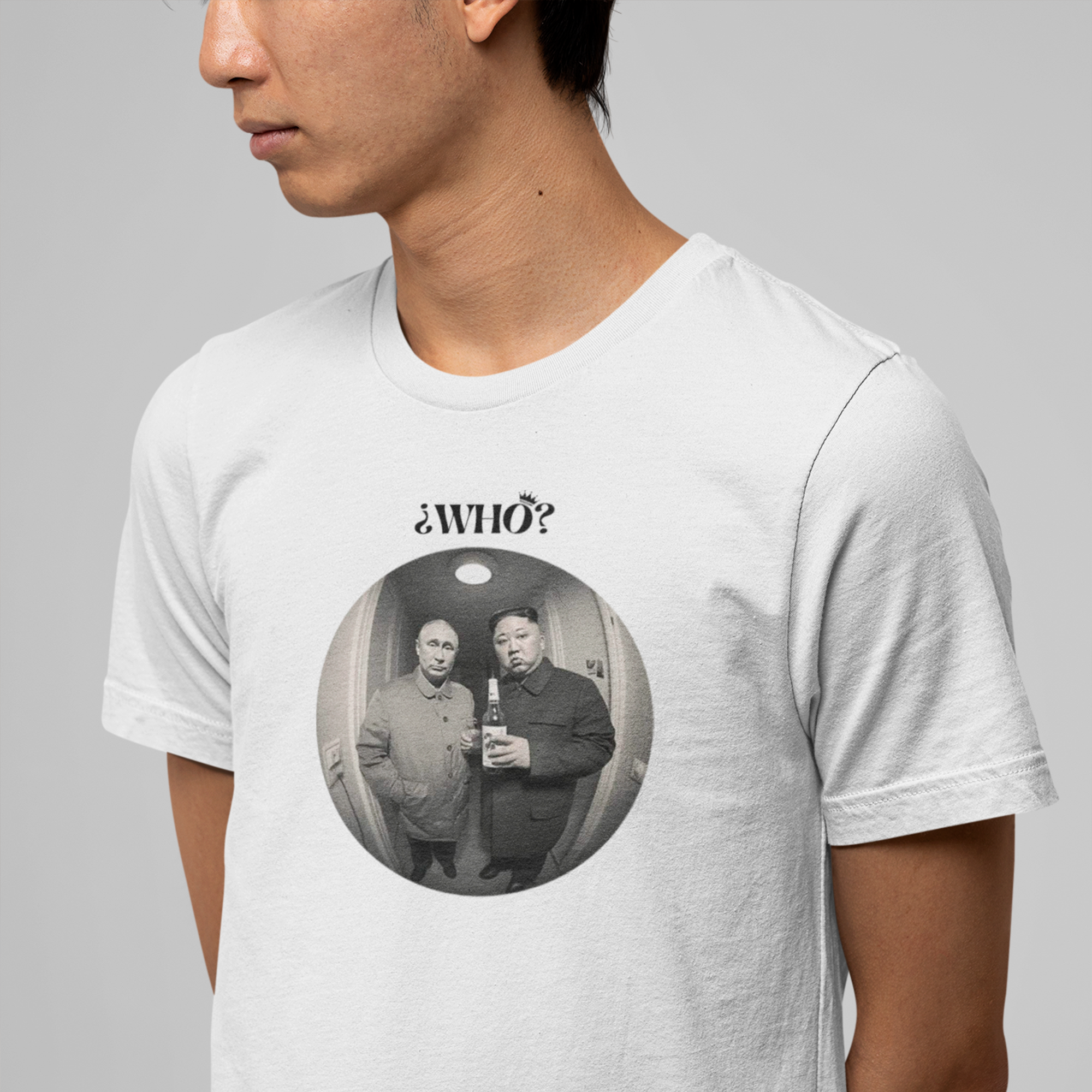 Una camiseta que mezcla ironía, política pop y estilo underground: atrevida, provocadora y con el sello WHO.